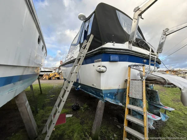 1982 Fairline Phantom 32 – A Spacious Classic Flybridge Cruiser currenlty ashore