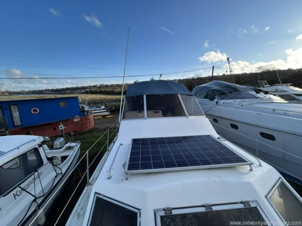 3 x 12-volt batteries (1 x engine + 2 x domestic ), age unknown. All charging from the engine alternator and via a 240v shore power system with ring main, immersion heater and battery charger and solar panel. The vessel has a small inverter fitted.
