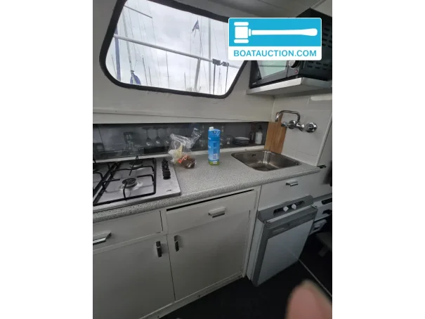 The boat is powered by a Ford inboard diesel engine with a power of 70 hp, distributed over three cylinders. This engine, electrically started, offers a cruising speed of approximately 18 km/h and a top speed of about 20 km/h. This makes the boat suitable for leisurely trips where enjoying the surroundings is central. The electric bow thruster facilitates maneuvering in harbors and when docking.