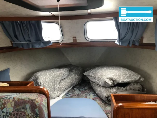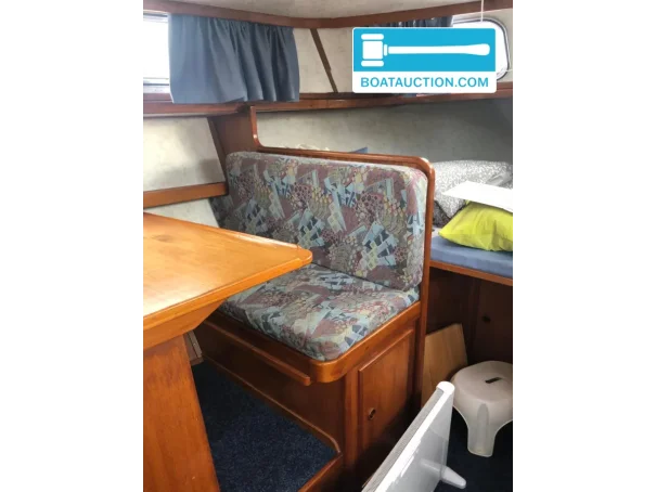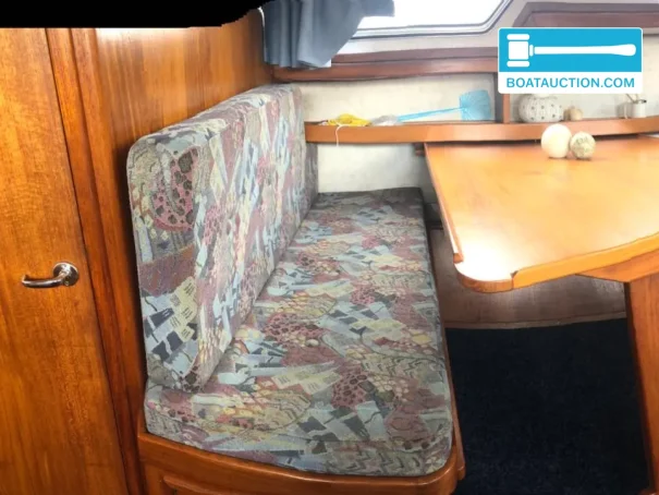 The interior is functionally arranged, although the style is somewhat outdated. However, this offers opportunities for buyers who wish to modernize the vessel to their own taste. The electric toilet system is connected to a closed system, contributing to environmentally friendly sailing.