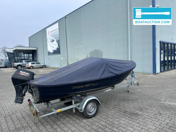 The Timeless 460 Classic comes with a cover, providing protection against weather influences when the boat is not in use. The upholstery is present and contributes to seating comfort. Additionally, the boat comes with a Kalf brand road trailer. This unbraked trailer is functional and makes transporting the boat easy. The trailer does not have a license plate.