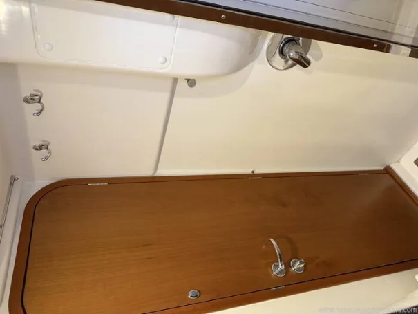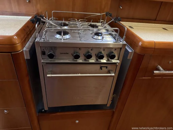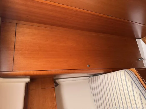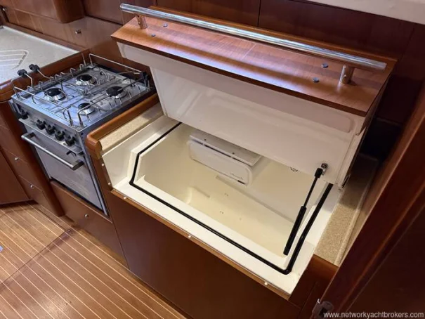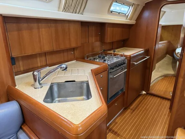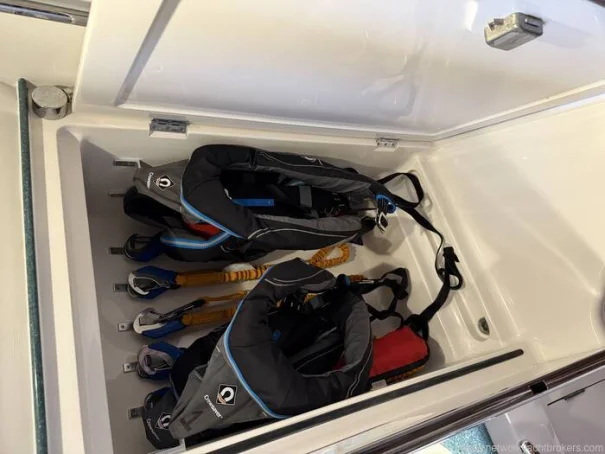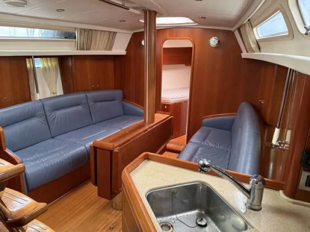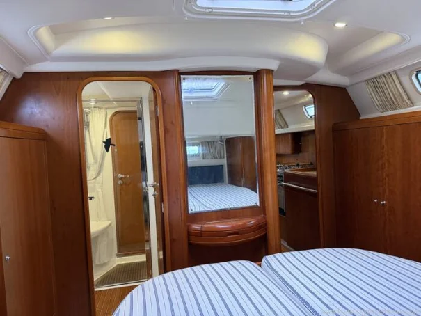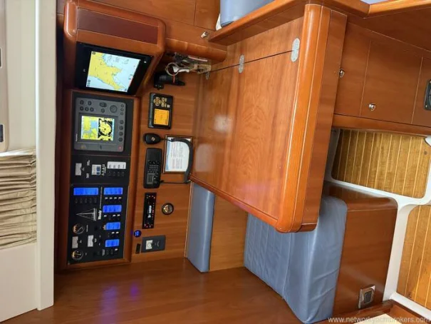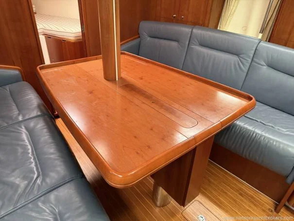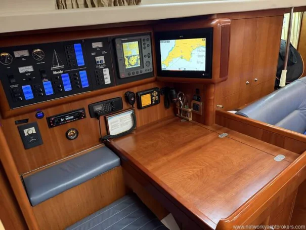 She benefits from a proven Yanmar 56hp diesel engine, bow thruster, warm-air diesel heating, generous tankage and a comprehensive inventory of navigation and cruising equipment, making her particularly well suited to longer passages and easy short handed handling. The in-mast reefing mainsail, all lines led aft, electric windlass and well laid out cockpit further enhance her ease of use.