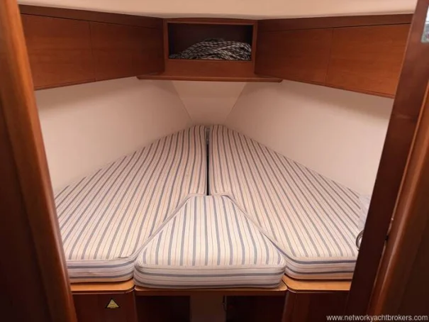 Double V berth in the forward cabin