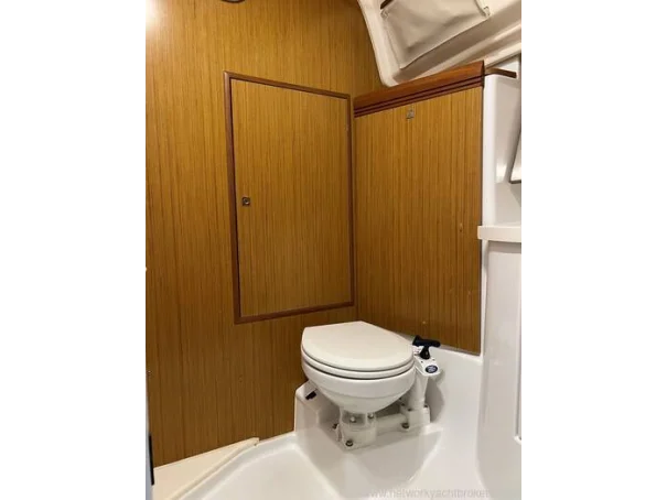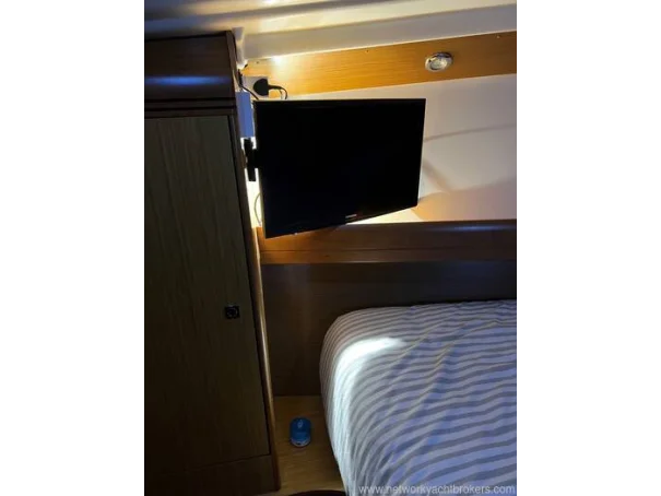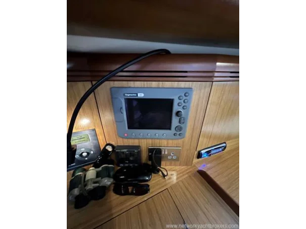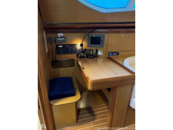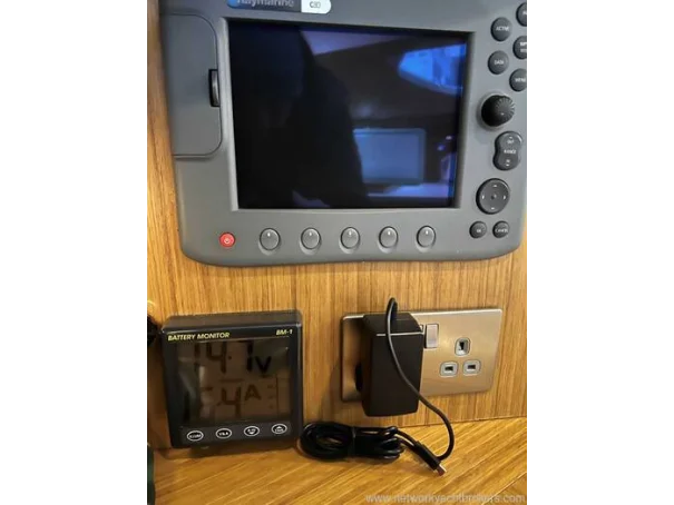 Electronics include: Raymarine C80 chart plotter in cockpit and chart table, Raymarine wind, depth and speed, Raymarine VHF DSC, Radar, autopilot, TV and more.