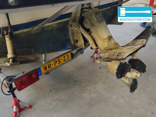 A TDS road trailer from 2003 is included with the boat, equipped with a license plate (WR-PS-23). The trailer is braked, has two axles, and a load capacity of 2030 kg. The trailer is equipped with a trailer winch, three rollers, and an extendable license plate with extra lighting for reversing. This makes transporting the boat easy and safe.