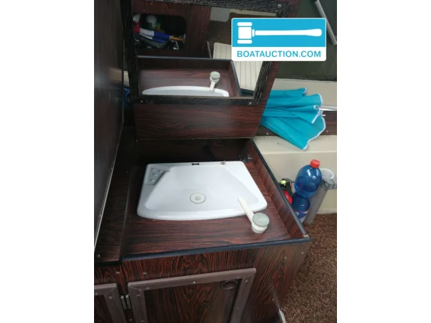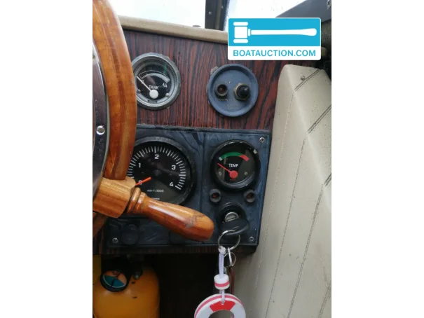 The boat is powered by a Peugeot Indenor diesel engine with a power output of 51 hp. The engine is electrically started and consumes approximately 1 to 1.5 liters per hour. The fuel tank has a capacity of 120 liters, providing a wide range. The propulsion is via a Z-drive with a Volvo Penta 280 stern drive, equipped with a ruddersafe for improved stability.