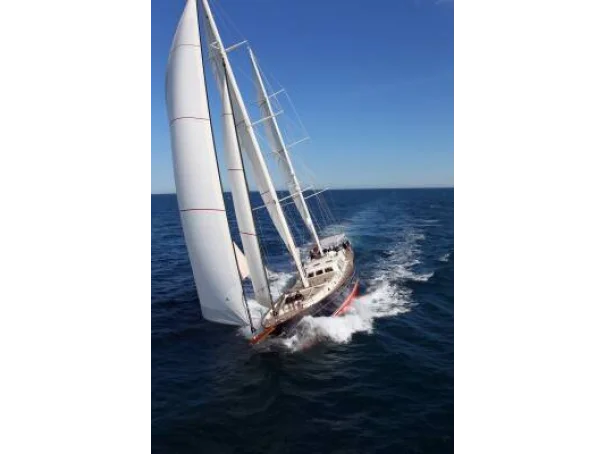 32.40m aluminium sailing superyacht built by Aganlar Yachts (2012) to RINA class and MCA LY2 standards, designed by Ron Holland. Accommodation for 10 guests in 4 cabins plus 4 crew. Scania 350HP engine, 2 x 28kW Kohler generators, ketch rig, air conditioning, watermaker, Simrad navigation, Lewmar bow thruster. Lying Turkey.