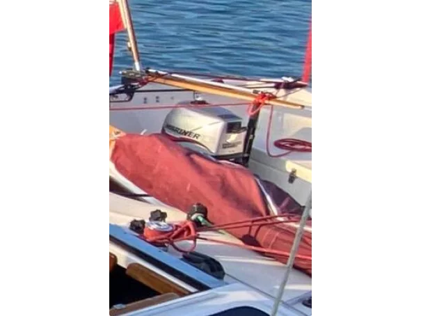 The Company offers the details of this vessel in good faith but cannot guarantee or warrant the accuracy of this information nor warrant the condition of the vessel. A buyer should instruct his agents, or his surveyors, to investigate such details as the buyer desires validated. This vessel is offered subject to prior sale, price change, or withdrawal without notice. Mechanical : Located in the cockpit outboard well, is the Mariner 5 HP, four stroke outboard with a three bladed propellor. Manual start. Remote fuel tank giving approximately 15 litre fuel supply.