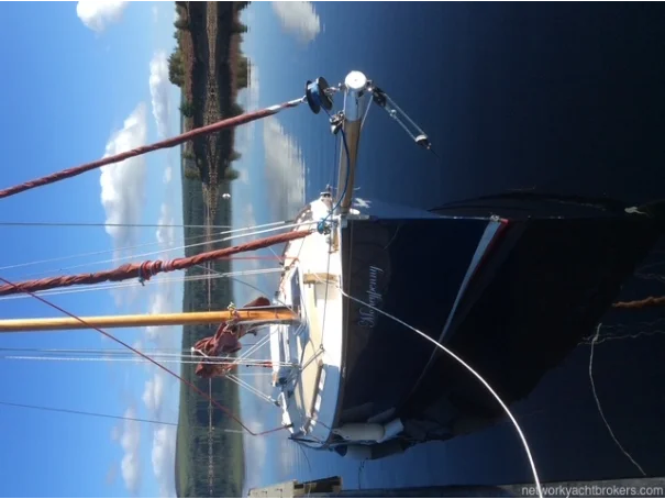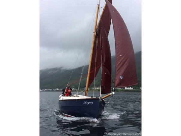 Masthead rigged gaff cutter. Varnished Oregan pine spars in a tabernacle. Stainless steel rigging . running rigging . Two sheet winches. Slab reefing mainsail system. headsail furling system. Lines led aft.