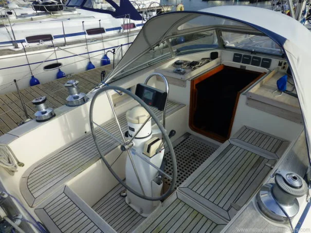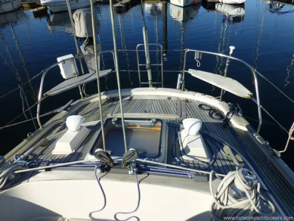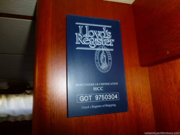 The hulls and decks of Hallberg-Rassys are built under supervision of the Lloyd's Register of Shipping. The hull is of laminate construction by the hand lay-up method, insulated above water line against heat and cold with PVC foam. The lead keel with reinforcement is bolted on with 15 stainless steel bolts. The rudder is carefully mounted for sensitive rudder feel. The cockpit is protected with a strong windscreen with opening centre section and sprayhood over front part of cockpit.