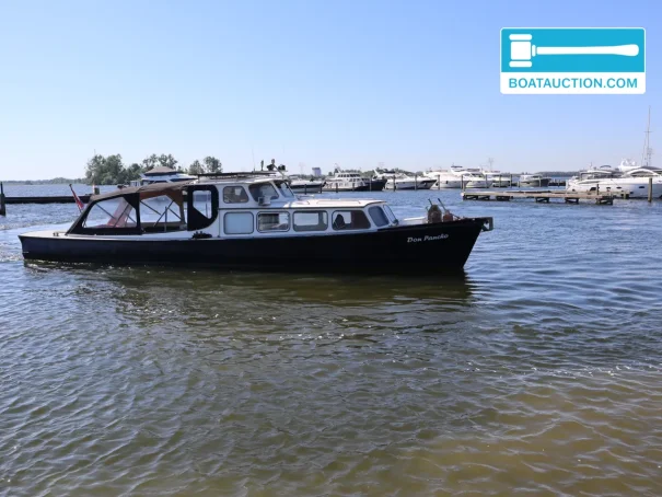 The steel hard-chine hull was designed with stability and good tracking in mind. With a stated weight of approx. 15,000 kg, Don Pancho sits calmly in the water, which is pleasant in changing conditions and when cruising with guests on board. Steering is via a wheel from an inside helm position, providing shelter in poorer weather and making the vessel suitable for longer cruising days. Thanks to the combination of dimensions and hull shape, this is a boat suited to relaxed touring, but also to more purposeful use as a work or service boatâdepending on the new ownerâs wishes.