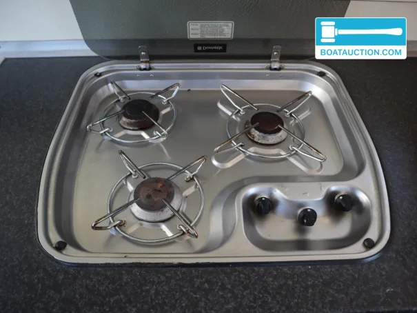 Inside, Don Pancho offers fixed berths for 2 people and additional sleeping capacity for 4, making her suitable for couples, families or a weekend away with friends. The hot-air heating extends the cruising season and makes overnight stays in spring and autumn more attractive. For day-to-day needs there is a galley with a 3-burner gas hob and a fridge with freezer compartment, keeping life on board practical during holidays or longer stays. The toilet is manual; discharge goes directly overboard, something to consider depending on cruising area and local regulations. The water tank holds approx. 210 litres, whichâtogether with the hot-water boilerâadds to onboard comfort.