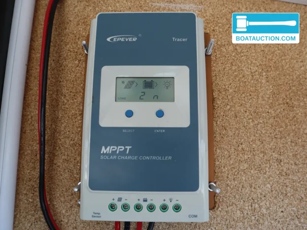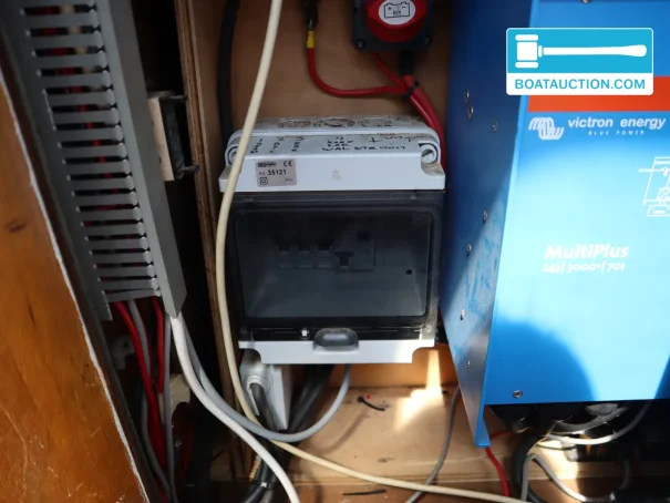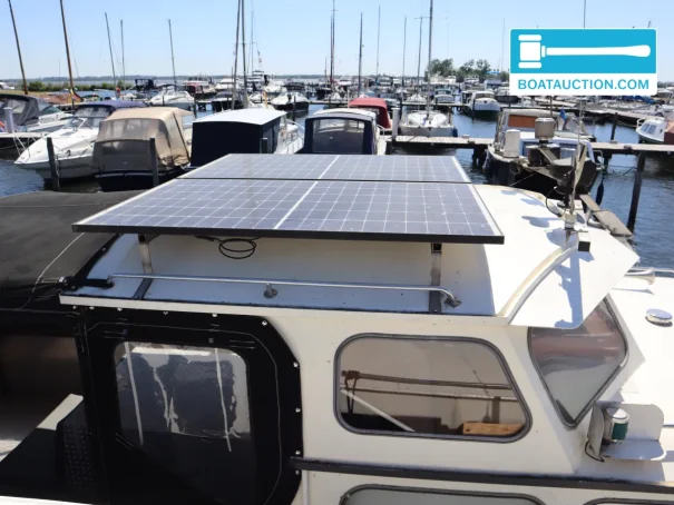 The electrical equipment is set up for independent use. Don Pancho has shore power, a battery charger, alternator, voltmeter and a 3000W inverter, providing 220V on board alongside the 24V system. There are 8 batteries in total, including 2x 180Ah (2020) and 6x 110Ah (2023). The solar panels with a total output of approx. 740Wp support the onboard energy supply, which is convenient when anchoring or staying in places without a fixed shore connection. For basic navigation a depth sounder is fitted, suitable for cruising in waters with varying depths such as lakes, rivers and canals.