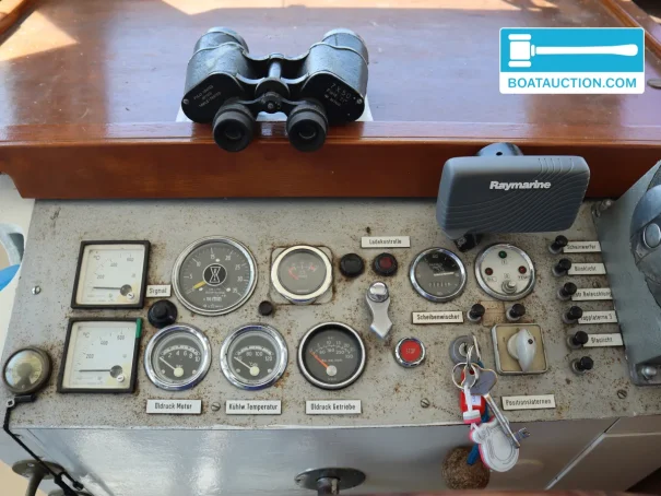 Propulsion comes from an MWM TD20 diesel engine (year of build 1984), a 6-cylinder inboard with electric start and an output of 120 hp. This power suits the character of the vessel: enough strength for smooth manoeuvring and comfortable cruising, with a cruising speed around 12 km/h and a top speed around 19 km/h. The stated consumption of approx. 4 litres per hour makes longer trips easy to plan. With a diesel tank of about 400 litres, the range is generous, making Don Pancho interesting for multi-day cruises and longer routes on rivers and canals. The key engine instruments are on board, including oil pressure gauge, temperature gauge and tachometer, so you can keep a close eye on engine condition while underway.