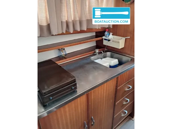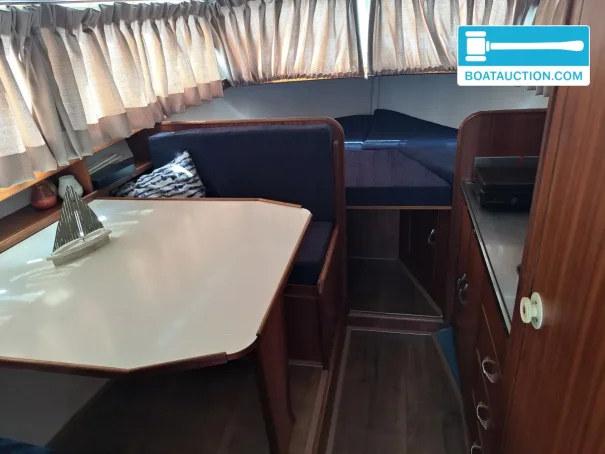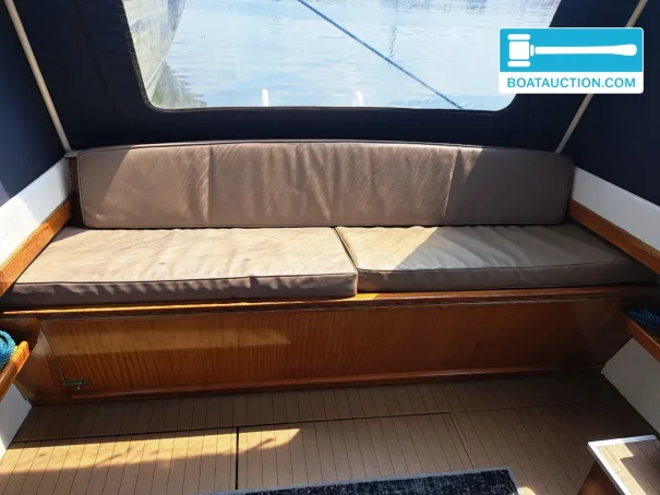 Propulsion is provided by a Peugeot inboard diesel engine with 40 hp and 4 cylinders, electrically started. The stated consumption of about 3 litres per hour matches the character of an economical cruising motorboat. On board are the key engine instruments, including an oil pressure gauge, temperature gauge and tachometer, so you can keep a close eye on the engine while underway. The diesel tank has a capacity of approx. 60 litres, which in practice provides a usable range for day trips and weekend outings, depending on speed and conditions.