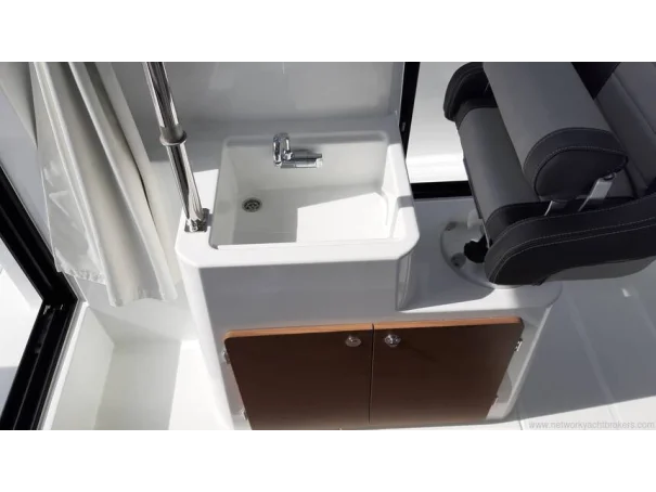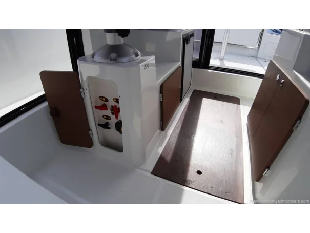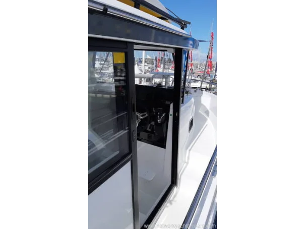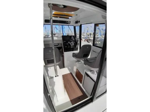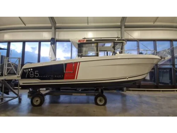 With upgraded Premiere trim level it combines comfortable large living areas with deeply recessed sidedecks for safe passage between the aft and forward cockpits or to follow the catch when on a fishing outing. Generously sized open aft cockpit with three bench seats that fold up to provide more open space. Wheelhouse has aft and starboard sliding doors, forward double berth cabin and separate toilet compartment. Bow thruster aids easy maneuvering in tight spaces. This Merry Fisher 795 Sport is powered by a Yamaha 200hp outboard.