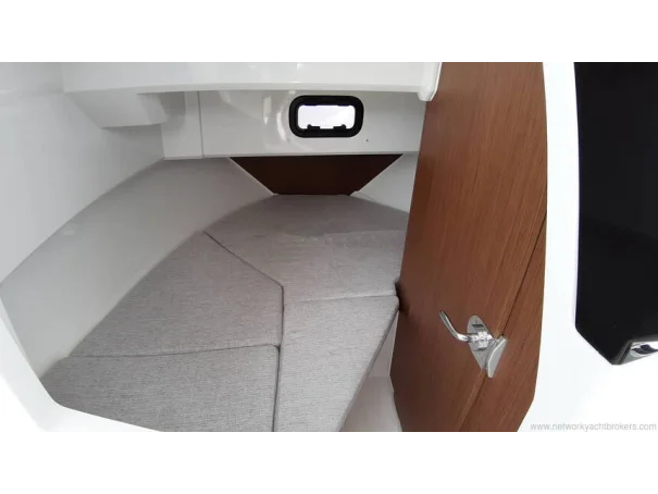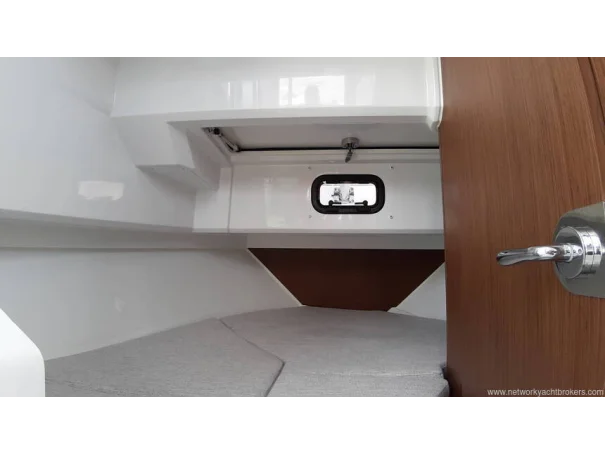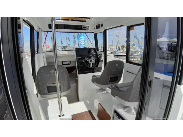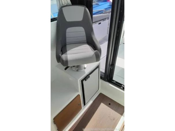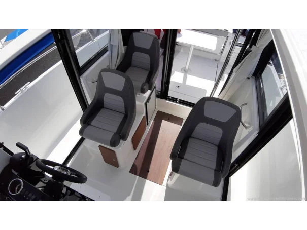The helm seat is adjustable and the seats can swivel. Sliding roof hatch, aft sliding door to the cockpit and wheelhouse interior curtains.