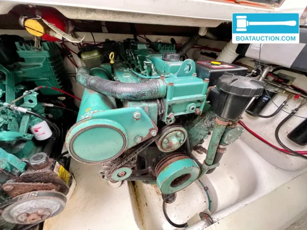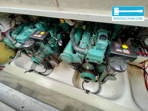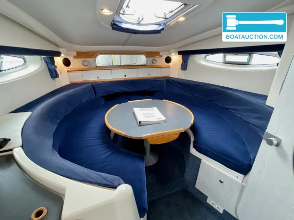In the engine bay are two Volvo Penta AQAD41D inboard diesel engines, each delivering 200 hp, with electric start and indirect cooling. The stated number of running hours is approximately 1,600 per engine, which for many buyers is an interesting starting point within this class. Propulsion is via a sterndrive with propeller, a configuration often chosen for its combination of manoeuvrability and efficiency. For longer trips, the 544-litre fuel tank is a welcome plus, and with instruments such as tachometers, temperature gauges and oil pressure gauges you can keep a close eye on the engines underway. Harbour manoeuvring is supported by an electric bow thruster, which adds noticeable comfort especially in crosswinds or tight berths.