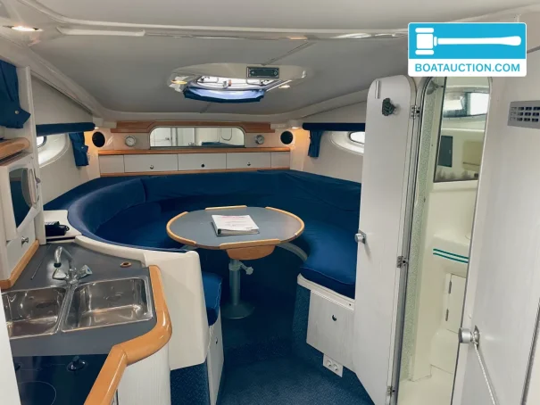 What sets this Sealine 310 Sportbridge apart is the smart use of available space. Inside you will find headroom of approximately 2.00 metres, making time on board comfortable, even during longer stays. There are two fixed berths in the aft cabin, with two single beds that can be joined to form a generous double. In addition, the saloon can be converted into an extra double berth, allowing a total of four people to stay overnight. This makes the boat suitable for weekend getaways, holidays and comfortable leisure cruising with family or friends.