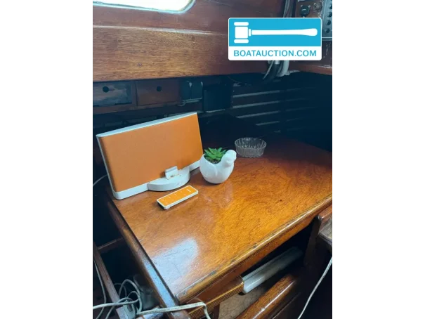For harbour manoeuvring and motoring, the yacht is equipped with a Sabb inboard diesel engine (year of build 1976) with 18 hp and two cylinders. The engine is operational and is started by hand, which suits the classic character of the vessel and is often appreciated by enthusiasts for its mechanical simplicity. The diesel tank has a capacity of approx. 40 litres, which generally provides a practical range for inland use, especially when the engine is mainly used for harbour manoeuvres and calm stretches.
