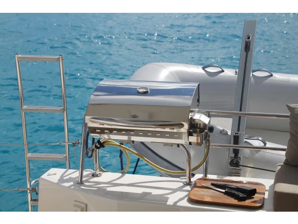 On deck, Wanderlust is designed for relaxed Mediterranean cruising, with a fully enclosed cockpit and bimini over the helm station, plus cockpit cushions and generous sunbathing areas, including forward sun pads. The cockpit is further enhanced by Flexiteek decking, cockpit showers, and a BBQ, making her ideal for outdoor living.