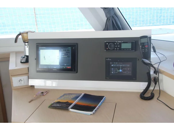 Navigation and electronics are comprehensive, including all Garmin GPS, plotter, radar, AIS transceiver, autopilot, wind instruments, echo sounder, VHF (1 fixed and 2 handheld), and Iridium GO satellite communication, making her well-prepared for coastal and offshore passages.