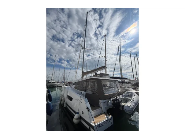 Built by Fountaine Pajot and constructed in moulded fibre reinforced plastic, the Lucia 40 is known for its solid build quality, generous beam, and efficient sailing characteristics. This vessel is scheduled to receive new antifouling in 2026 and benefits from consistent servicing, including an engine service completed in June 2025.