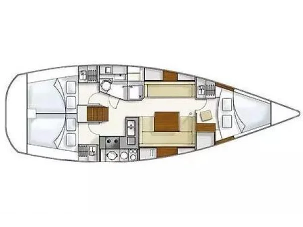 3 double cabins – 2 aft, 1 forward
