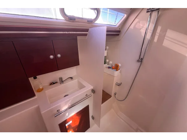 Powered by a Yanmar 3JH4E diesel engine (40 HP) with Saildrive transmission, the yacht provides reliable auxiliary power.