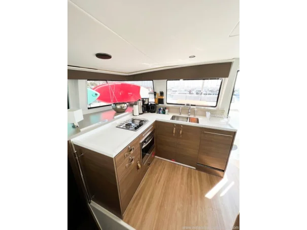 Galley and Refrigeration Eno 3-burner gas stove and oven Samsung double-door refrigerator Eno gas barbecue (cockpit) Siemens dishwasher Microwave oven