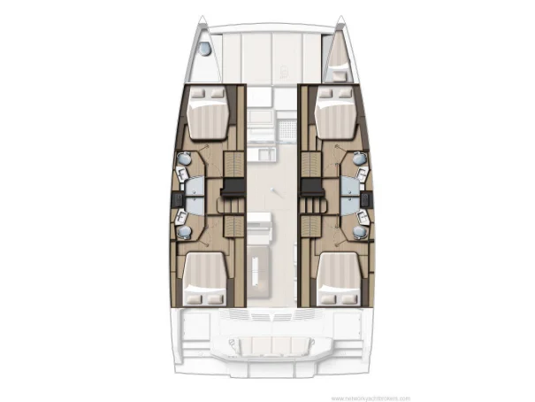Accommodation 4 double guest cabins Aft cabin beds 190 cm x 160 cm Forward cabin beds 190 cm x 145 cm 1 crew cabin Total of 10 berths Each cabin (4) with electric Jabsco WC and shower Additionally, 1 manual Jabsco WC (port forward compartment)