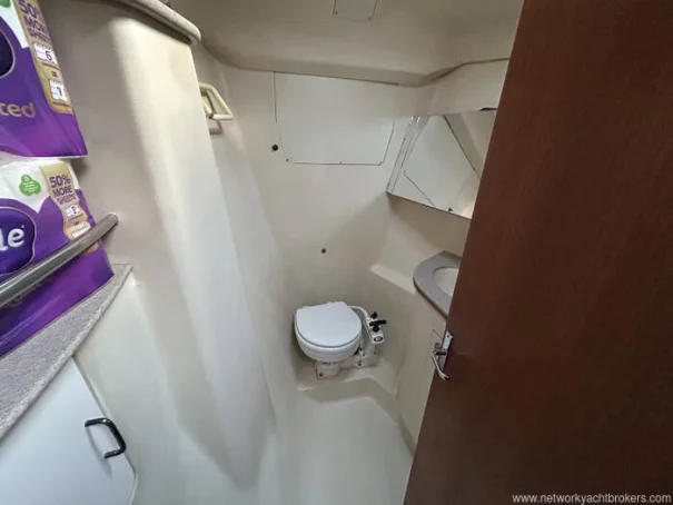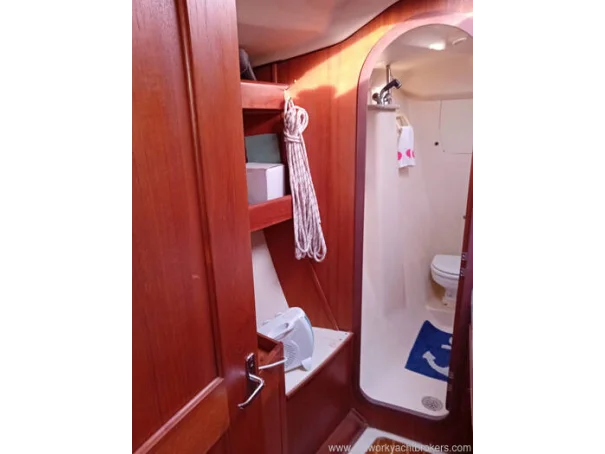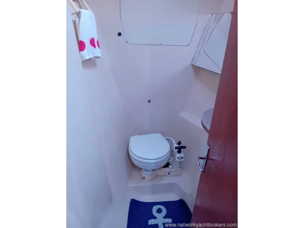 The yacht benefits from two separate heads compartments. The aft heads, located to port, include a marine toilet, wash basin and shower, while the forward heads serves the forecabin. Both heads have holding tanks with macerator pumps.
