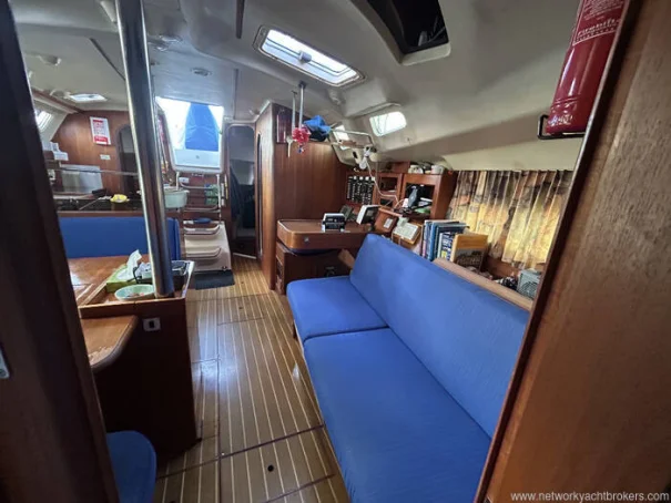 Designed with ease of handling in mind, the yacht is fitted with in-mast furling, a roller furling genoa and a powerful yet manageable sail plan. Under power, she is driven by a reliable 50hp Yanmar diesel engine, providing efficient cruising when the wind drops and has a bowthruster for easy handling in marinas