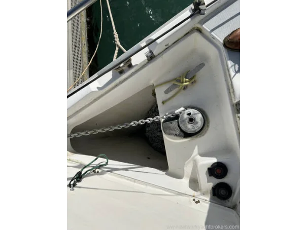 This Hunter Legend 410 has a Bermudan Fractional sloop rig, with a 1998 Zpar aluminium deck-stepped mast and boom, with stainless steel standing and running rigging. The yacht has a Furlex 300s furling headsail and an in-mast furling mainsail. All lines are led aft to the cockpit. The age of the standing rigging is unknown.