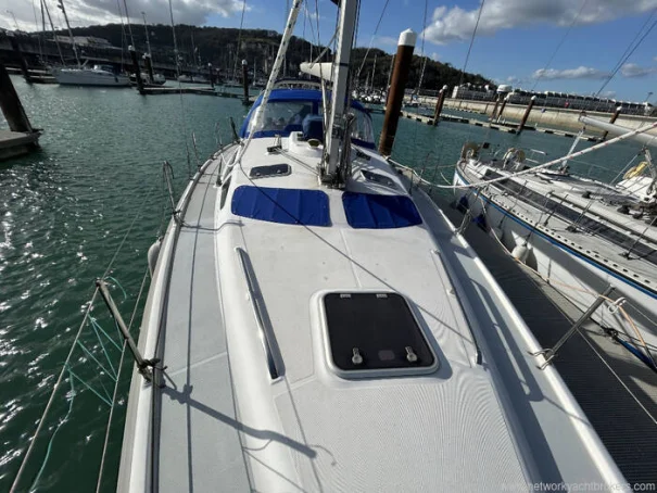 Built in 1997 to 1998 specifications, this Hunter Legend 410 was a Southampton Boat Show boat with a white GRP hull and decks with non-slip surfaces. It has white GRP seats in the cockpit and aft cockpit area. It has two teak seats mounted on the pushpit. Wheel steering. fibreglass toe rails. Stainless steel stanchions, pulpit. Sprayhood with full cockpit Bimini. Walk through the transom gate to the bathing platform. . Self-draining cockpit. It was last out of the water in July 2025 when the hull was polished, antifouled and the anodes were changed. The yacht is being sold as the owners have decided it's time to retire from sailing. The owners are open to offers, and a berth at Dover Marina is available by separate negotiation.