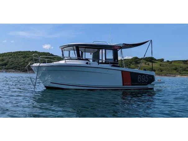 Lightly used Jeanneau Merry Fisher 695 Sport Series 2, supplied new by Euroyachts and kept on the Clyde. Powered by a Yamaha F150 with low hours and full professional service history, this versatile model is ideal for coastal cruising, fishing, and family trips.