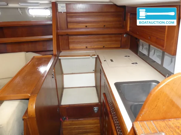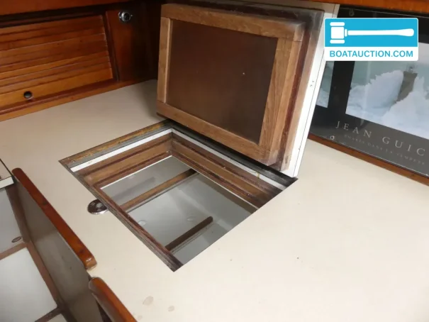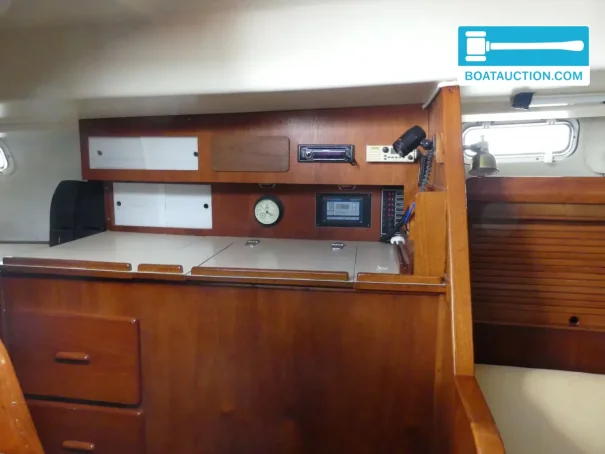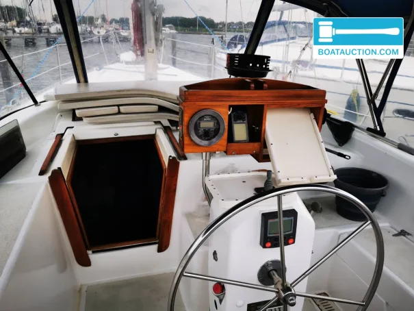 For navigation, the basic equipment is complete, including GPS, depth sounder, log/speedometer, VHF radio and autopilot. This supports both relaxed cruising and longer crossings. In terms of safety, a liferaft is present as well as an electric bilge pump.