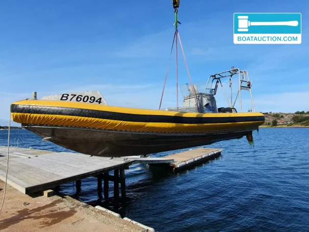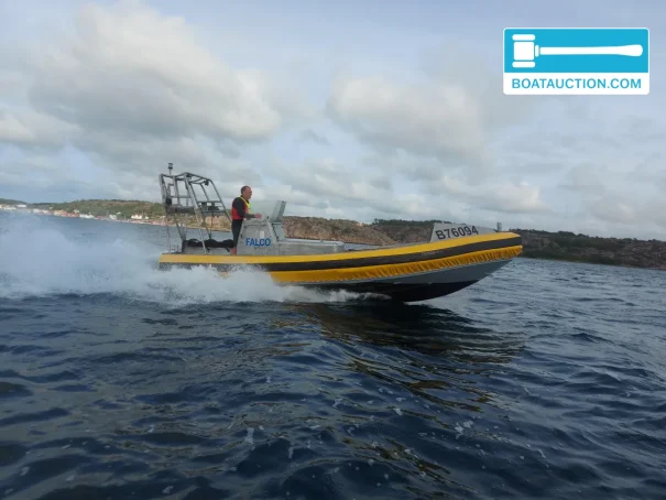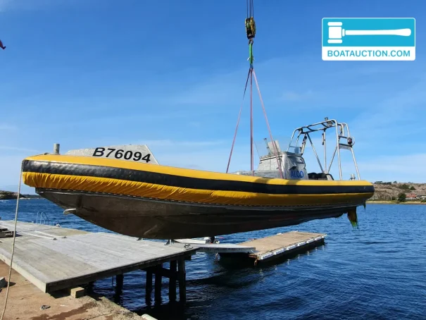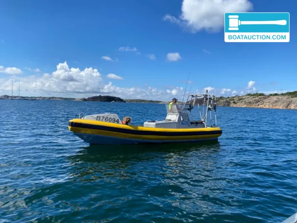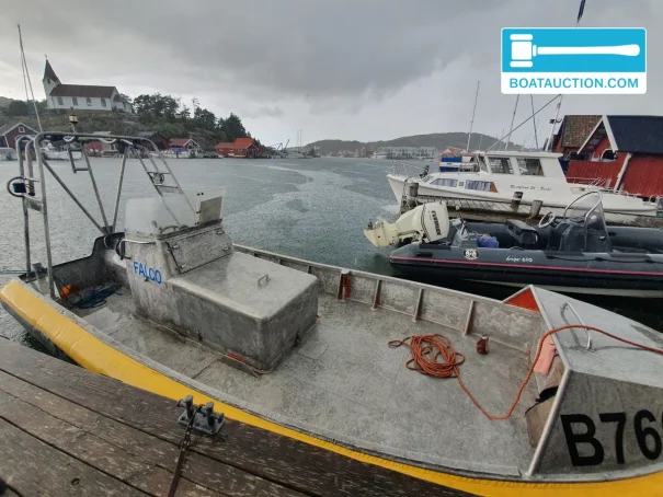 The hull is made of aluminium, a material popular in the world of workboats and professional tenders due to its combination of strength, relatively low weight and practical usability. The V-hull contributes to a confident, wave-cutting ride and gives the boat a stable character in changing conditions. According to its usage history, the boat has been operated at sea and used, among other things, as a dinghy/tender for a larger Danish vessel, and later also for work around offshore wind turbines. That kind of deployment says a lot about its intended use: fast, functional and built to keep going when the water is less friendly. The self-draining cockpit supports this workboat profile and helps to quickly discharge water from the deck, which is beneficial in wet conditions or intensive use.