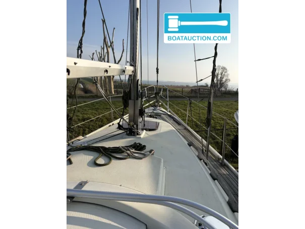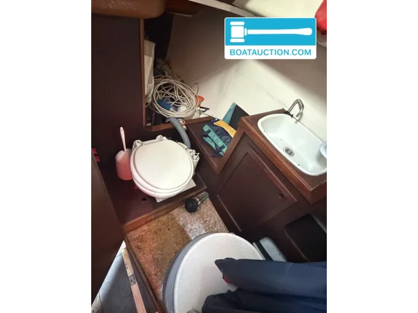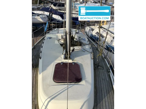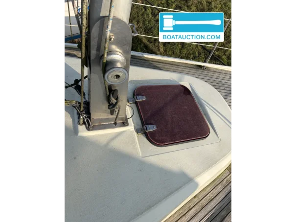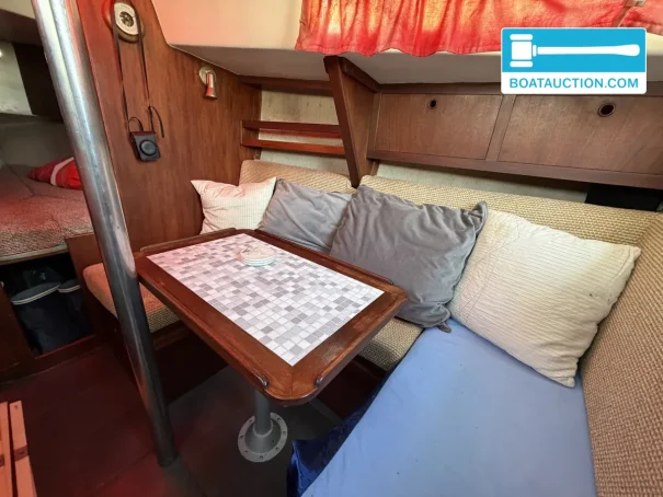 Outside, the boat is equipped with a teak deck, a cockpit table and exterior cushions, making the cockpit a pleasant place for lunch at anchor or a long evening in the marina. Fenders and lines are also included, as well as a swim ladder for comfortable swimming or easy boarding. The sprayhood and sail cover are due for replacement.