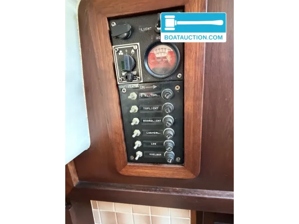 The electrical system includes shore power and a battery charger, with one battery on board. For navigation, a depth sounder and compass are present, suitable for use on lakes, waterways and canals. In terms of safety, a lifebuoy is included. The boat was taken out of the water for maintenance in 2025 and no indications of osmosis have been reported, which is an important point of attention for a GRP sailing boat.