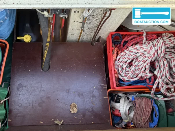 The aluminium mast carries a simple and practical sail plan with mainsail and headsail (jib). With two sails, handling remains clear and manageable, which is ideal for solo sailors or couples who want to sail without too many operations. The condition of the sails is described as reasonable; having the sails and sheets cleaned would be an obvious step to make everything feel fresh and run smoothly again. For buyers who like to optimise step by step, this is a clear and manageable first improvement, without turning the boat into a complex project straight away.