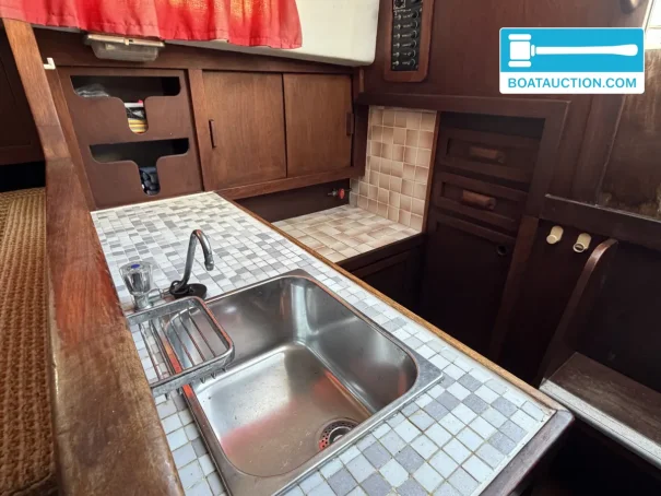 This Kievit 27 is fitted with a fin keel, contributing to a stable position in the water and a pleasant feel at the helm. Steering is via a tiller from the cockpit, providing direct feedback from the boat and making sailing intuitive. On broader points of sail the boat holds her course nicely and maintains speed well. Upwind she performs reasonably, although her character is more cruising-oriented than race-oriented; donât expect extremely high pointing ability like modern, light designs, but rather steady progress with relaxed trim.