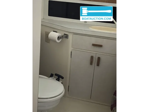 The toilet is manual. It is also stated that the toilet discharge goes directly into open water; prospective buyers should take this into account when considering the intended cruising area and any modifications they may wish to make.