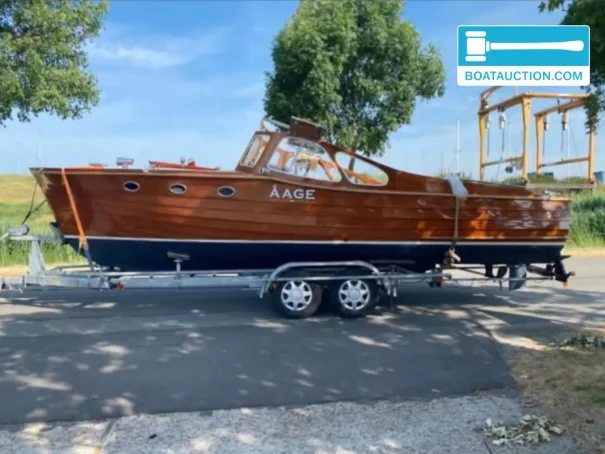 The 1961 Storebro Solo Ruff 25, named à age, is a characterful Swedish classic for enthusiasts of traditional craftsmanship and relaxed cruising. This type of Storebro is known for its stylish lines, solid build quality and pleasant handling on inland waters. With a length of 7.50 metres, a beam of 2.30 metres and a shallow draft of approx. 0.70 metres, this wooden motorboat is particularly suitable for lakes, canals, rivers and also shallower waterways. This makes à age an appealing choice for anyone looking for a classic motorboat with which you can explore many cruising areasâfrom quiet canals to recreational trips on larger open water.