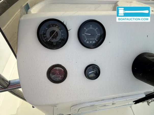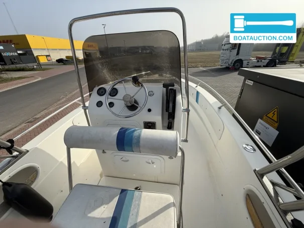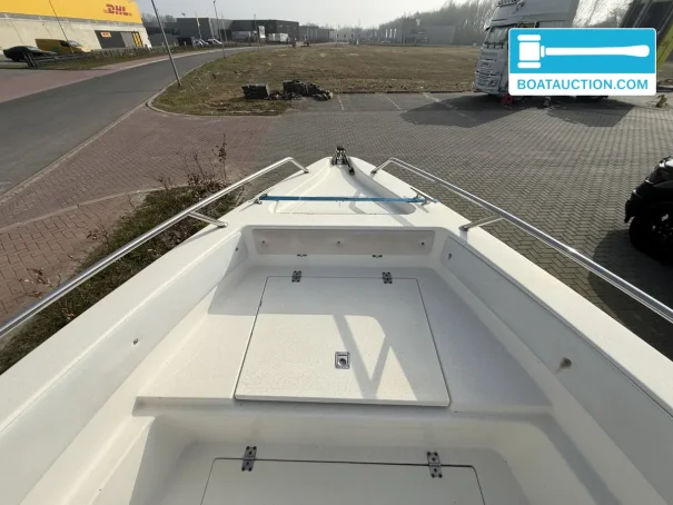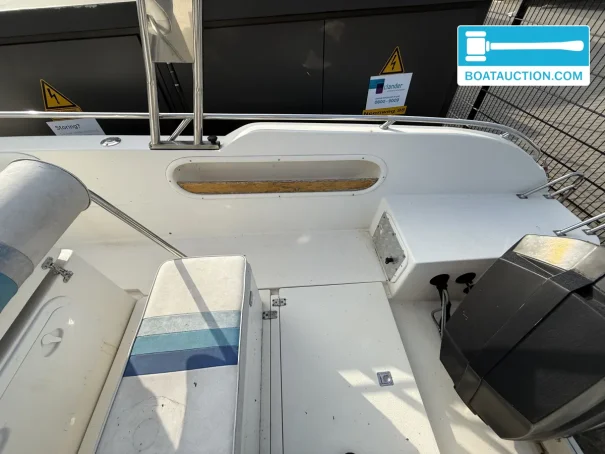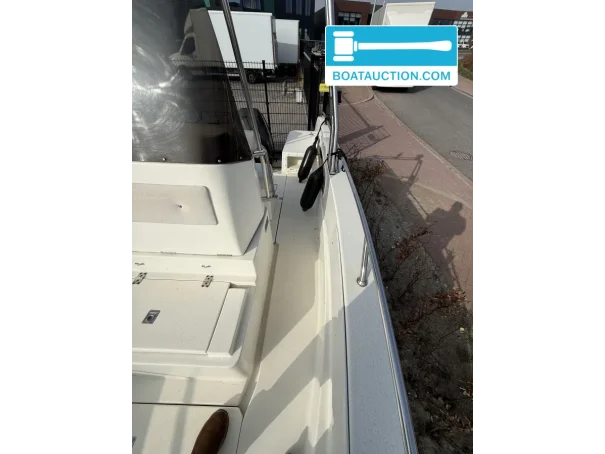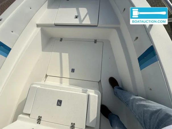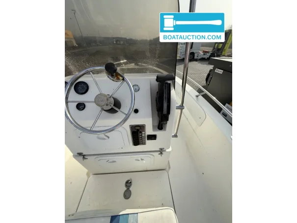 Mounted on the transom is a 200 hp Mercury outboard engine, electrically started and equipped with six cylinders. This configuration fits perfectly with the sporty profile of a 6.5-metre console boat: you have ample power for brisk acceleration, smooth planing and confident handling when travelling with multiple passengers. The petrol tank has a capacity of 80 litres, providing a practical range for day trips on lakes, waterways and rivers. Onboard instruments include a fuel gauge and tachometer, so you can keep an overview of consumption and engine rpm while underway and easily adjust your speed to comfort and conditions.