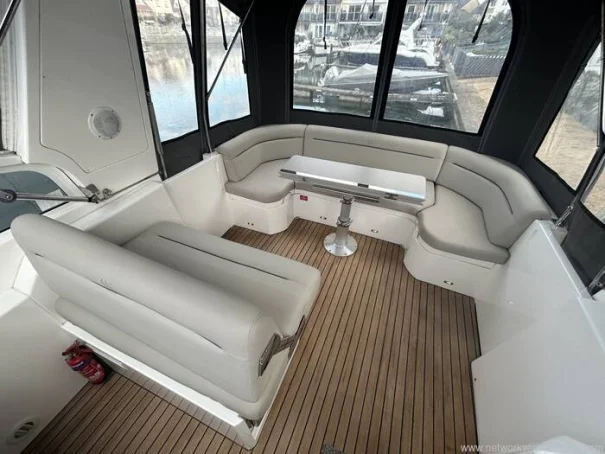 Large helm console with excellent all-round visibility and sight of engine instruments and navigational aids, the helm position and aft cockpit are covered with a 2-part canopy which is easily removed.