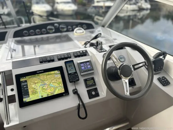 'Necessity' has been professionally maintained and boasts an impressive specification, including twin Volvo Penta D6-330 diesel inboard engines, bow and stern thrusters for effortless manoeuvring, a 4kW generator, Raymarine Axiom chartplotter, Garmin Vesper Cortex VHF with AIS, pop-up television, LED deck lighting, and much more making her equally suited to relaxed cruising or extended time aboard.
