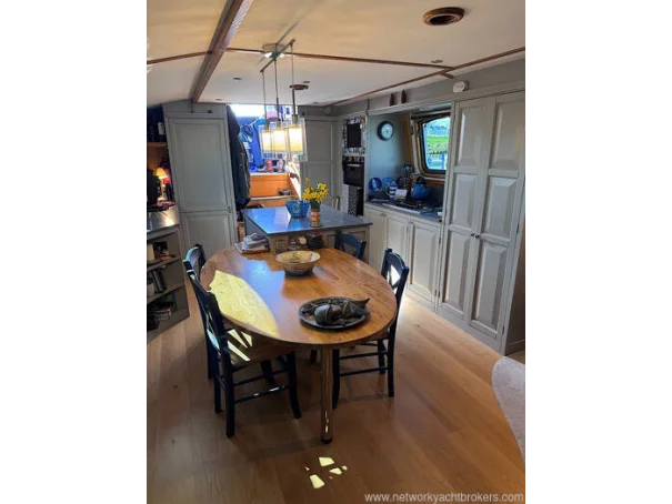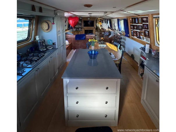 Measuring approximately 70ft in length with an expansive widebeam layout, she provides a bright and spacious interior ideal for those seeking an alternative to traditional housing. The open-plan saloon and fully equipped galley create a welcoming living space which is complete with high-quality finishes, integrated appliances and ample storage making her perfect for both relaxing and entertaining with friends and family.