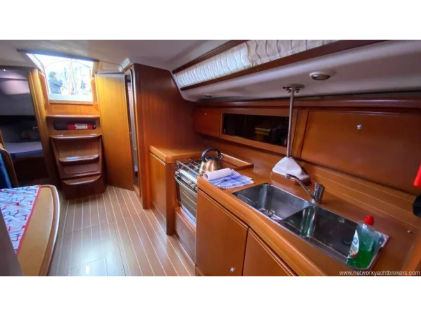 She features a fractional sloop rig, providing excellent balance and responsive sailing characteristics. The rig is well suited for both performance sailing and comfortable cruising, allowing easy sail handling even with a reduced crew.