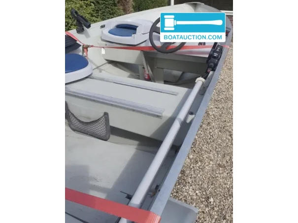 The 2010 Quicksilver 450SF is the kind of boat that immediately inspires plans. She is compact enough to trailer and launch with ease, yet offers surprisingly usable space for a day of fishing, a sporty trip on inland waterways, or simply relaxed cruising for two. This Quicksilver fishing boat is being auctioned via BoatAuction and comes as a complete set: the boat, her Tohatsu 25 hp four-stroke outboard engine, and a road trailer with registration. That makes her interesting for anyone looking for a Quicksilver 450SF for sale, a trailerable fishing boat, or a practical aluminium boat for recreational use.